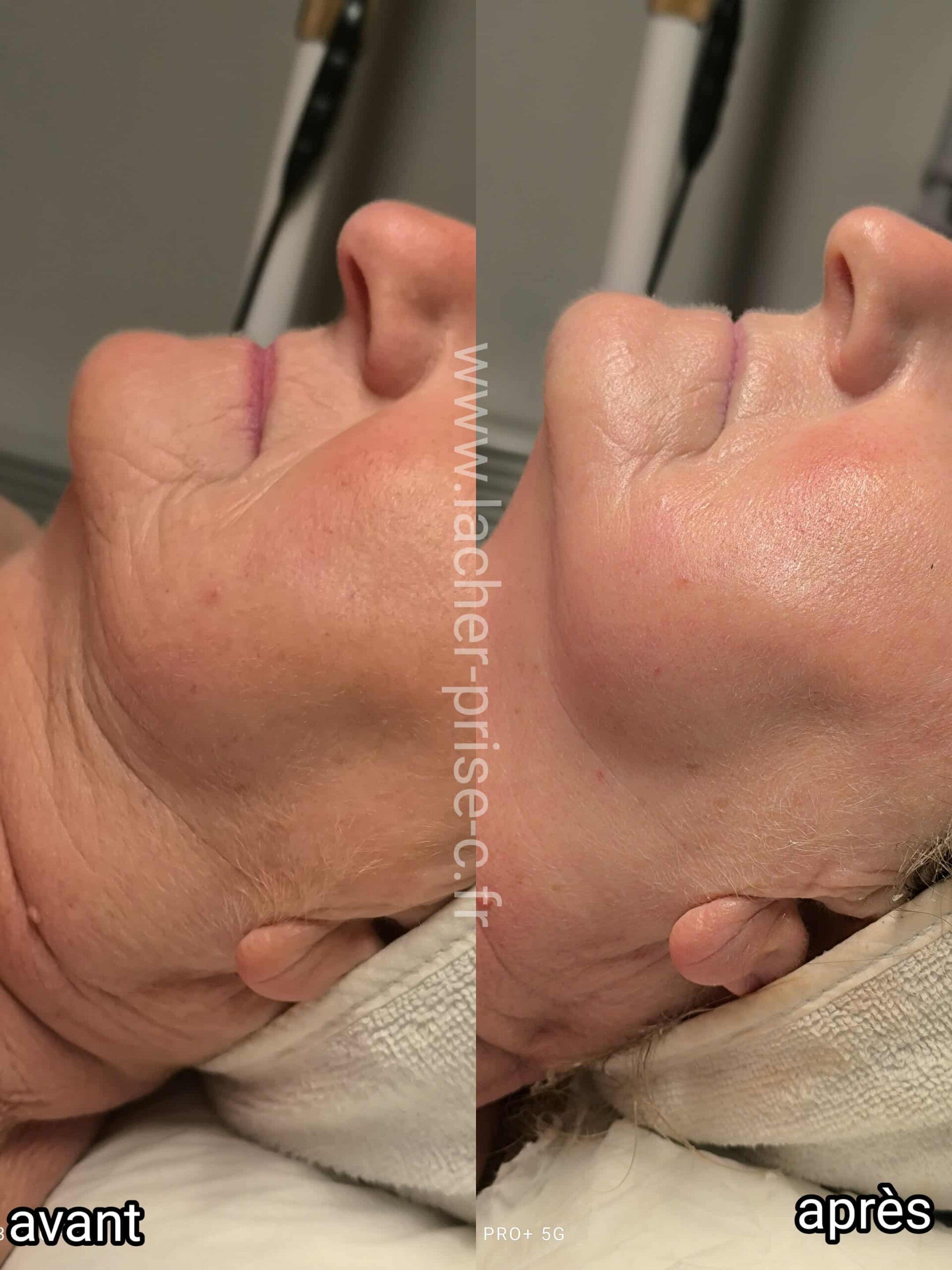 👉 Sur la photo ci-dessus, vous pouvez observer un résultat avant/après après seulement 4 séances :